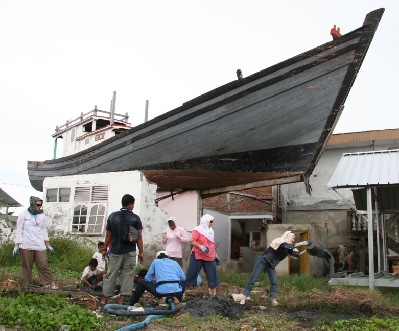 Many residents came out to watch us — the sweating, red-faced “bule” — working under a blazing sun to haul away buckets of muddy salt water and debris the tsunami had left in their neighbors’ wells.
